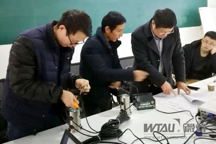 專家組成員正在對微特公司生產(chǎn)的開度荷重綜合監(jiān)控裝置進(jìn)行出廠驗收