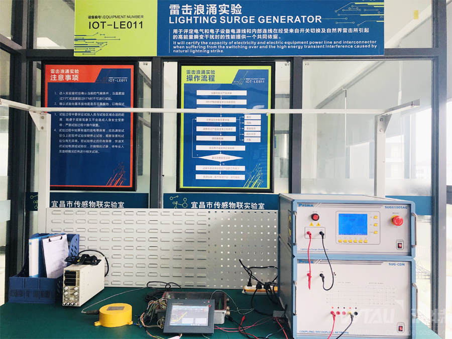 ▲對(duì)監(jiān)控儀表進(jìn)行雷擊浪涌實(shí)驗(yàn)檢測(cè)