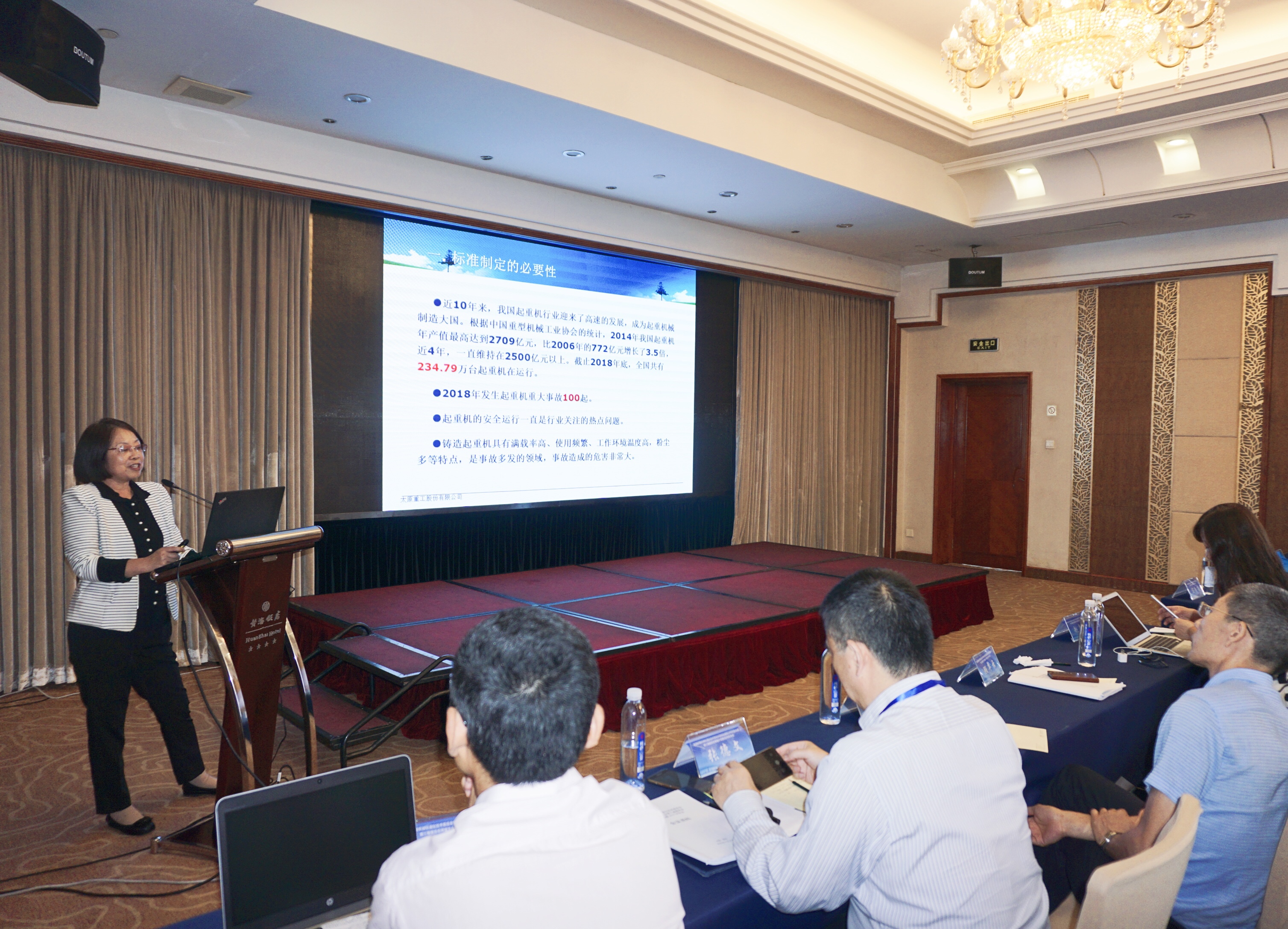 全國起重機標委會秘書長、北京起重運輸機械設(shè)計研究院有限公司趙春暉教授級高工作了《起重機械標準國際化及我國參與ISO國際標準的成績》的專題報告,重點介紹了我國起重機械標準的數(shù)量及構(gòu)成情況、采用國際標準情況及參與國際標準化活動取得的成績,分析了起重機領(lǐng)域國際標準的發(fā)展趨勢和國際標準體系的特點。