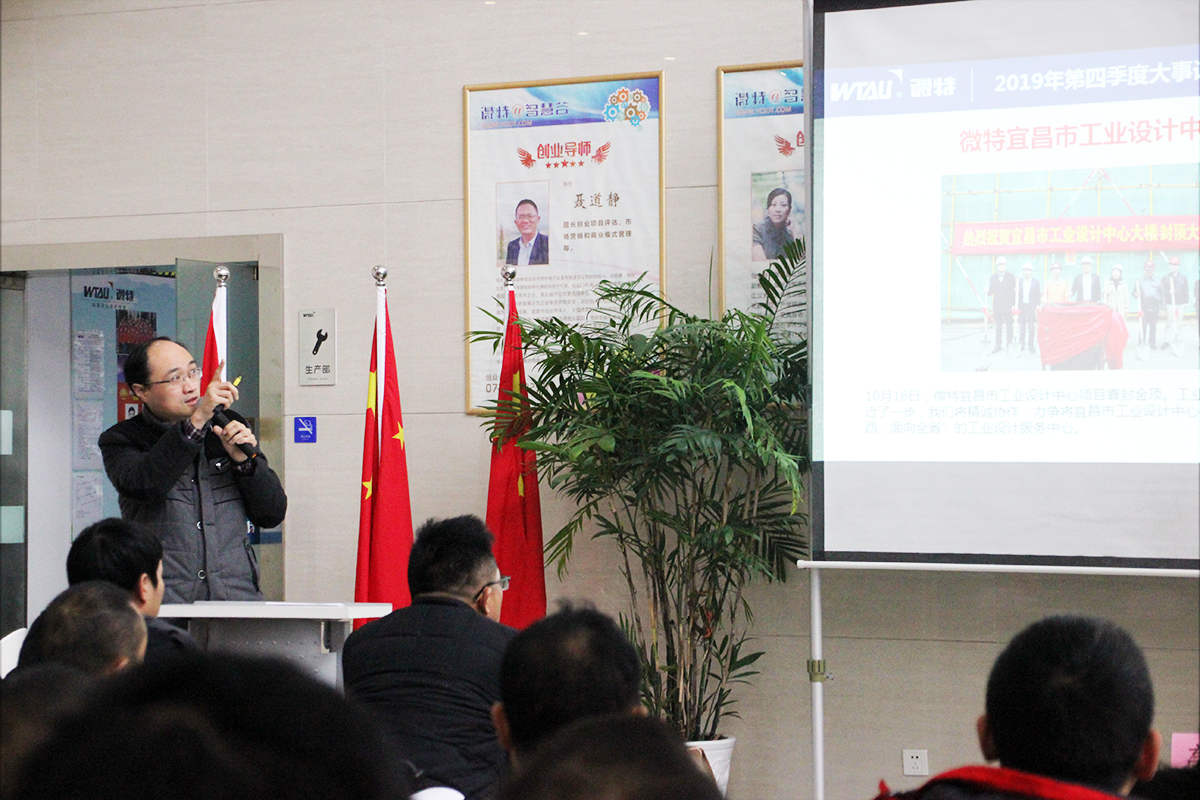 會(huì)議中,公司總經(jīng)理高鈺敏帶領(lǐng)與會(huì)同事一起回顧了19年第四季度的重要事件。在第四季度中,微特各部門(mén)全部順利完成19年全年累積銷(xiāo)售任務(wù),截止12月31日,公司整體大幅超額完成全年任務(wù);聶董參加湖北省委經(jīng)濟(jì)工作會(huì)議及省政協(xié)專題會(huì)并宣講發(fā)言;微特被國(guó)家工信部認(rèn)定為國(guó)家級(jí)工業(yè)設(shè)計(jì)企業(yè)并參加第三屆中國(guó)工業(yè)設(shè)計(jì)展覽會(huì);微特宜昌市工業(yè)設(shè)計(jì)中心項(xiàng)目喜封金頂;10月份,微特參加19年印尼海事展;聶董獲聘為三峽大學(xué)碩士生導(dǎo)師;微特受邀參加中電建協(xié)施工機(jī)械專業(yè)委員會(huì)年會(huì),參加中國(guó)機(jī)械工程學(xué)會(huì)物流工程分會(huì)六屆二次理事會(huì),參加印度國(guó)際工程機(jī)械與技術(shù)展覽會(huì)等多項(xiàng)重要會(huì)議。
