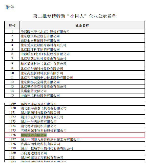 日前,微特技術(shù)有限公司通過國(guó)家工信部公示,入選第二批專精特新“小巨人”企業(yè)。
