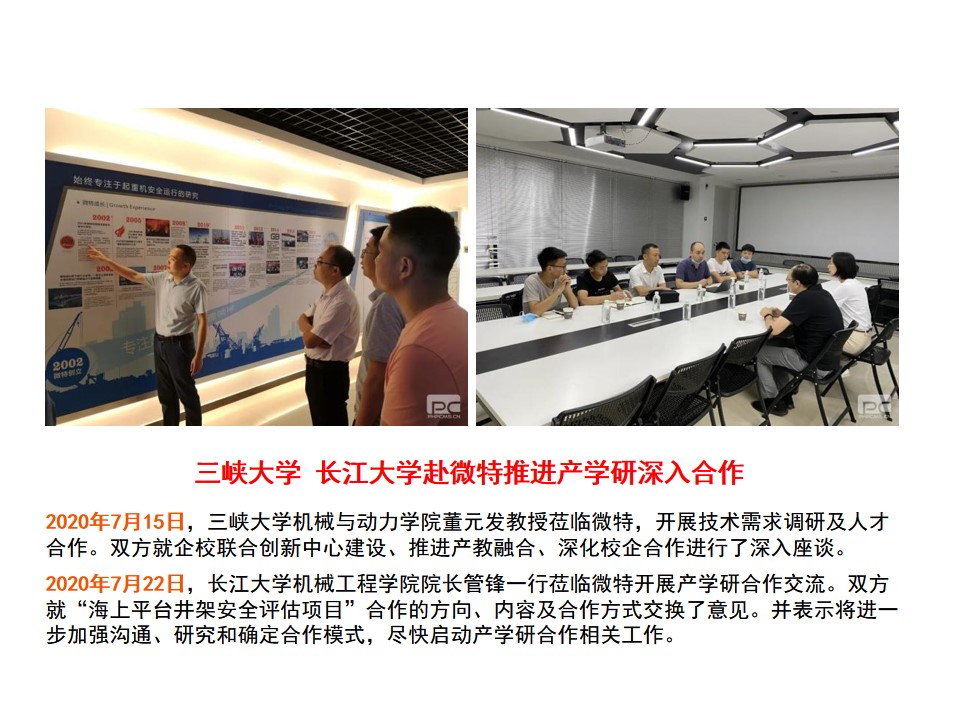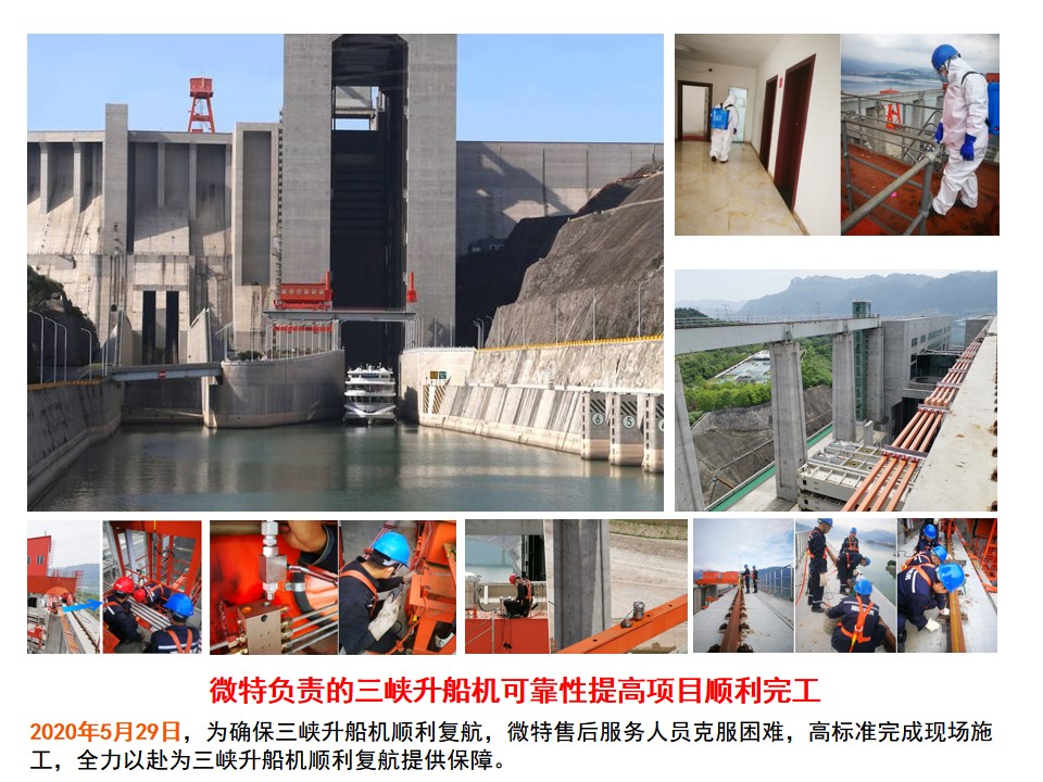 在這特殊的一年里,微特人攻堅克難完成全球規(guī)模最大、技術(shù)難度最高的三峽升船機(jī)的閘首橋機(jī)可靠性提高項目,為三峽升船機(jī)順利復(fù)航提供保障;微特人敢為人先承接定制化攀鋼起重機(jī)智能運(yùn)維系統(tǒng)、振華重工卸船機(jī)稱重系統(tǒng)等重大項目,貼身為一流鋼鐵船舶企業(yè)服務(wù);微特人開拓進(jìn)取與中水七局、中建四局等企業(yè)合作研發(fā)起重機(jī)運(yùn)行關(guān)鍵技術(shù)項目取得重大突破;微特人勤勉努力不斷深化與全球最大石油生產(chǎn)公司沙特 Aramco、全球頂級起重機(jī)品牌DEMAG、Liebherr之間的合作,成果豐碩。