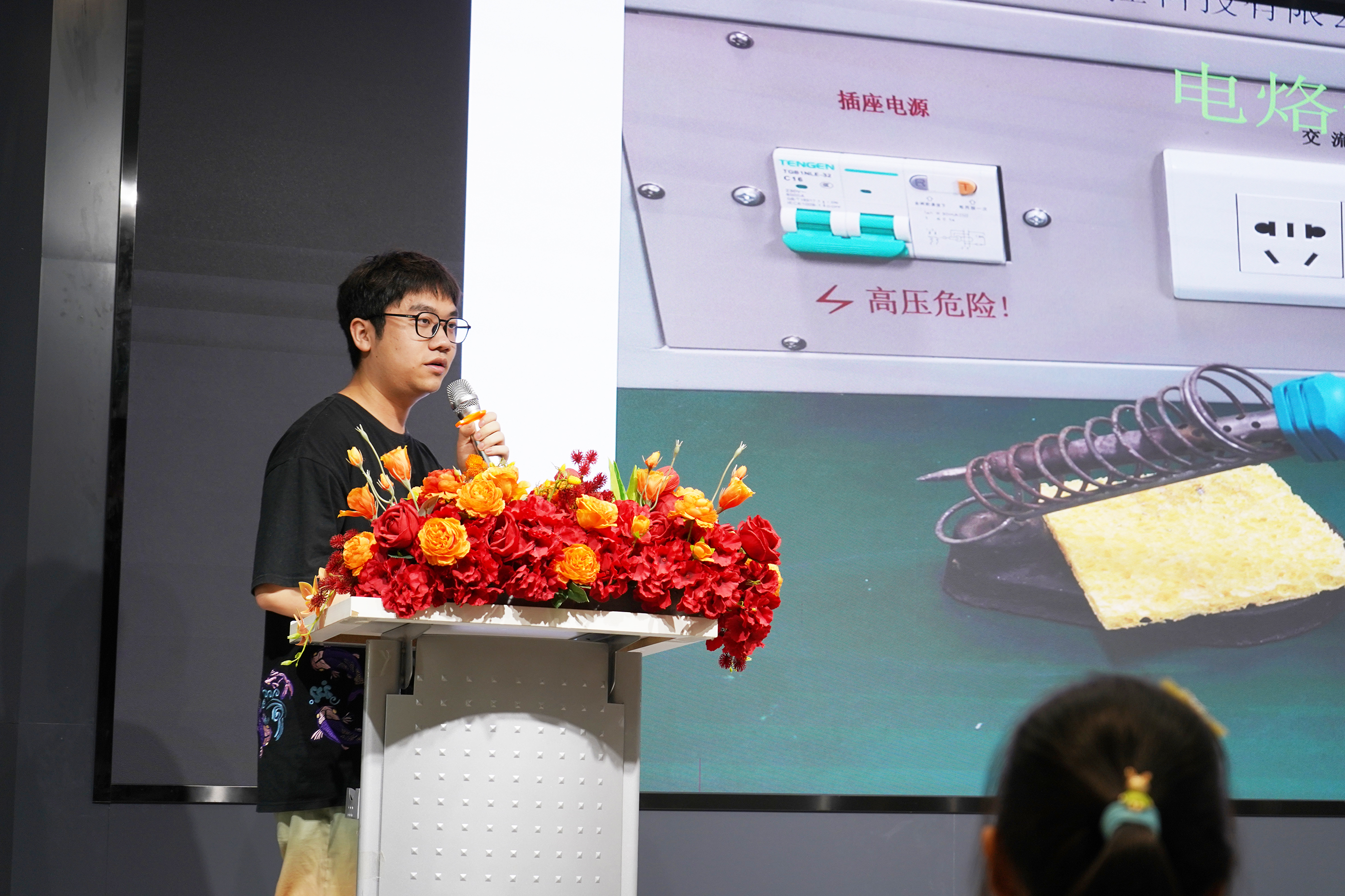 另外,余同學(xué)向所有的孩子們分享了他在大學(xué)完成的多項(xiàng)實(shí)驗(yàn)與設(shè)計(jì)作品,其中跑著跑著會掉輪子的循跡小車引得現(xiàn)場的孩子們哈哈大笑,也勾起了他們無限的興趣,這場展現(xiàn)豐富多彩大學(xué)生活的演示也引得眾多孩子們對未來充滿了無限的向往。